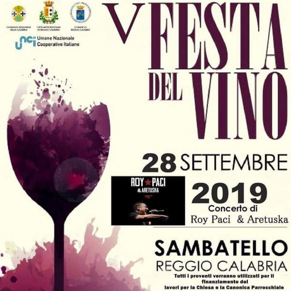 Reggio calabria, 27 set – Si rinnova anche quest’anno l’appuntamento con la festa del vino di Sambatello. La festa, giunta alla 5′ edizione, si svolgerà il 28 settembre 2019 a partire . Ospite speciale della serata il cantante catanese Roy Paci insieme Aretuska.