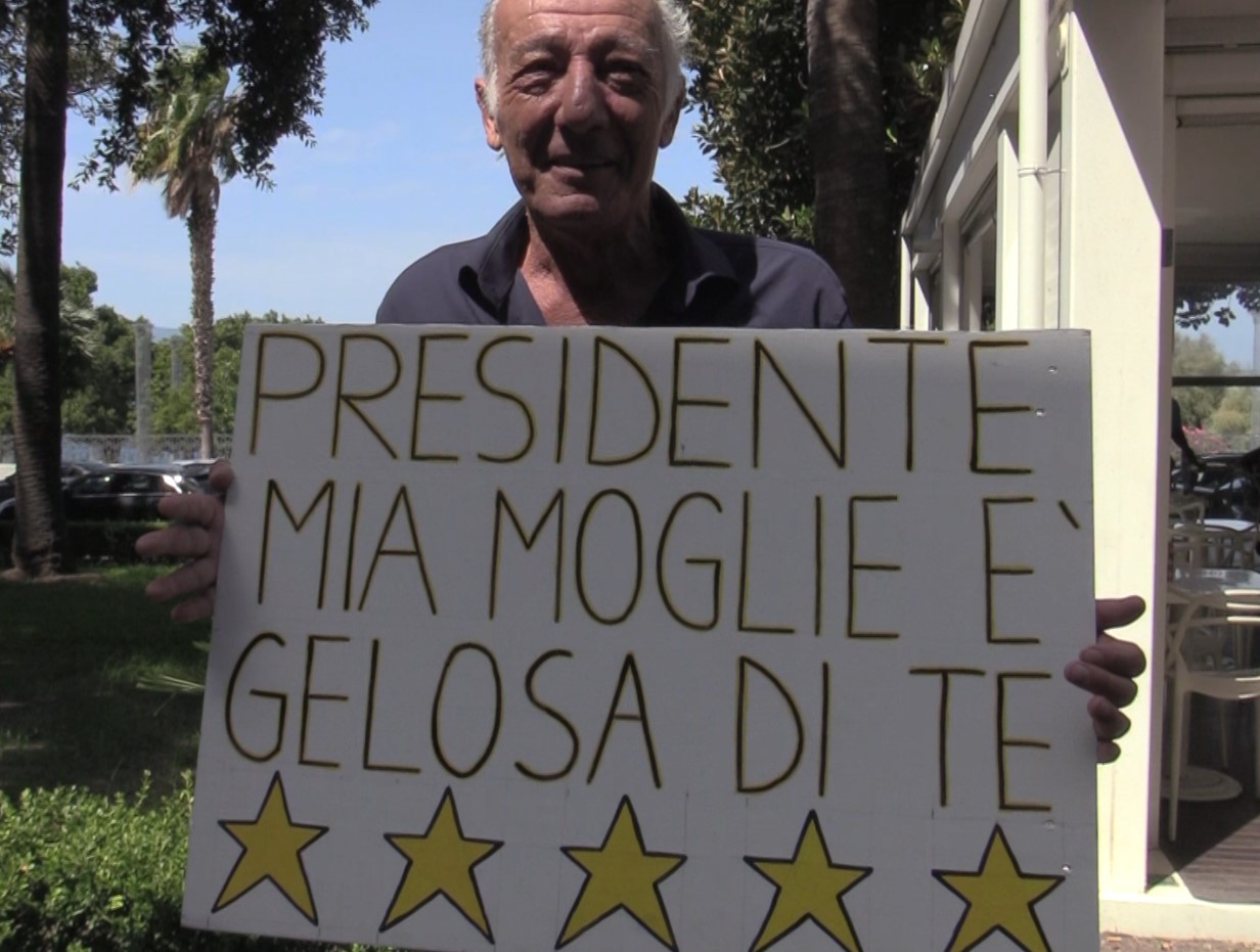 Davanti all’esercizio commerciale – che Bentivoglio e consorte tengono aperto, malgrado tutte le onte subite dal crimine organizzato incluso il tentato omicidio, giusto in un bene confiscato alle ‘ndrine -, tanti supporter con cartelli esplicitamente inneggianti a Conte e al MoVimento, ma pure più simpatici («Mia moglie è gelosa di te», per esempio).