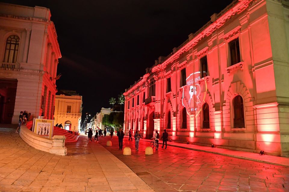Ieri sera l’amministrazione comunale in occasione della promozione della Reggina calcio in serie B, per festeggiare l’evento insieme ai tifosi, ha deciso di illuminare alcuni luoghi simbolo della città con i colori amaranto e con una grande B