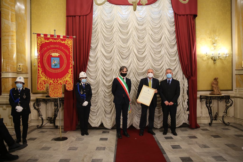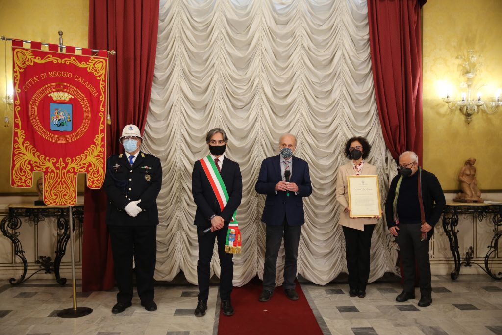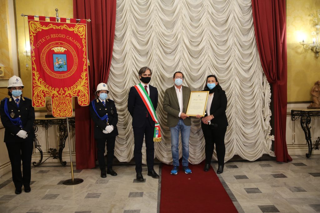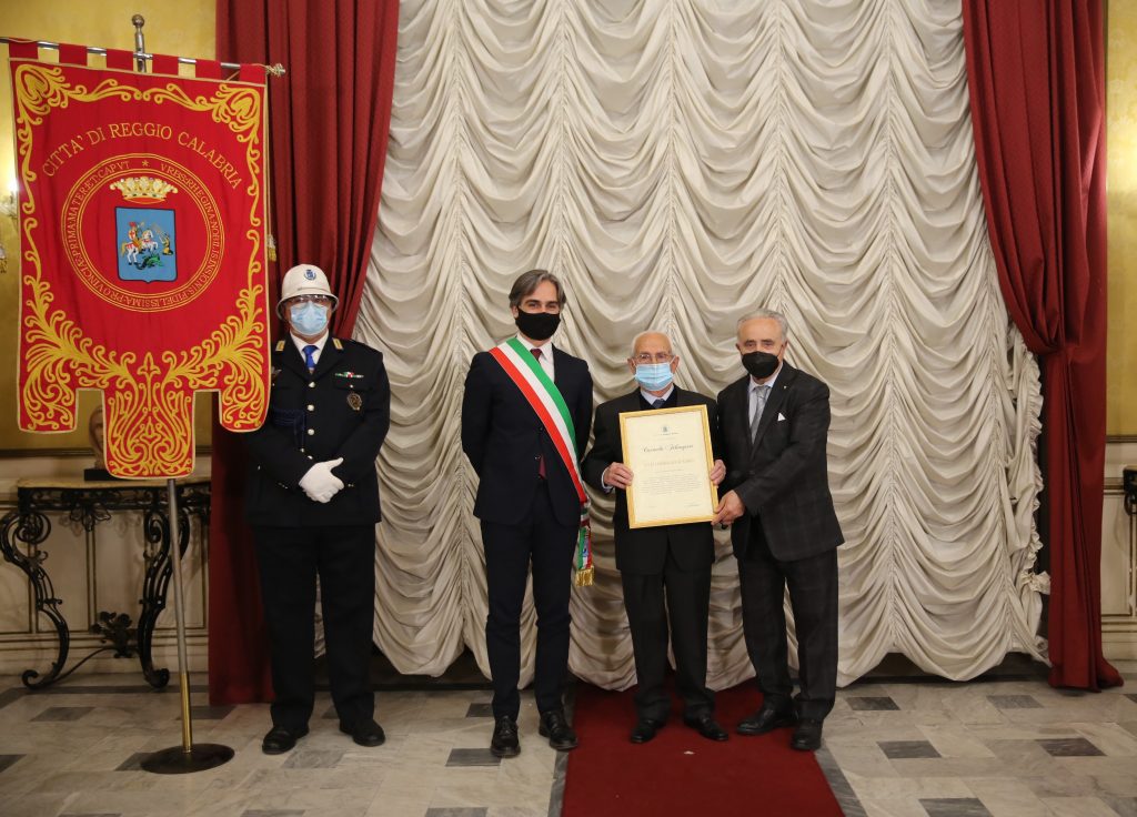 Una cerimonia sobria quella che si è tenuta oggi pomeriggio all’interno del salone di Palazzo San Giorgio per la consegna dei “San Giorgio d’oro” a 24 personaggi illustri che con le loro opere hanno portato lustro alla città, hanno portato e portano in alto il nome di Reggio Calabria in Italia e nel mondo. “Nel salutare le istituzioni presenti – ha detto il sindaco – le ringrazio per il prezioso contributo messo in campo in un momento molto delicato per l’intero Paese alle prese con un’emergenza sanitaria che, ancora una volta, ci costringe a vivere in maniera più contenuta anche questa che è la giornata dell’identità e dell’orgoglio reggino.”