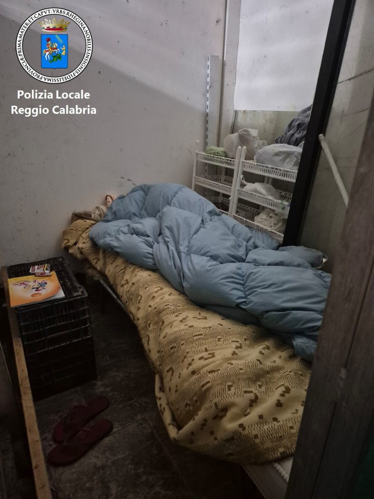 Nel retro dell’esercizio, sono stati infatti rinvenuti tre stanzini realizzati con plexiglass e cartone con relativi giacigli nei quali erano allocati alcuni effetti personali, tra le cassette di frutta e verdura.