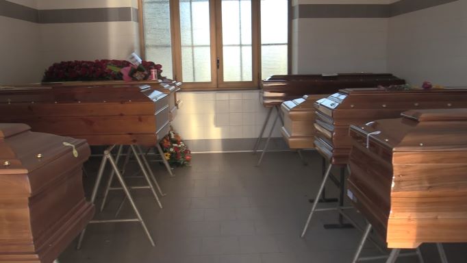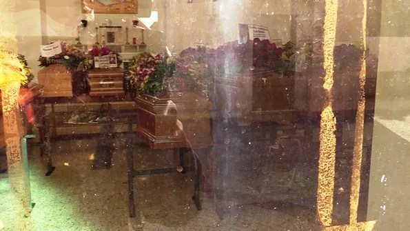 In un momento qualsiasi di una giornata qualsiasi, 7 bare in chiesa, 7 in una morgue, 6 nella sala mortuaria adiacente…