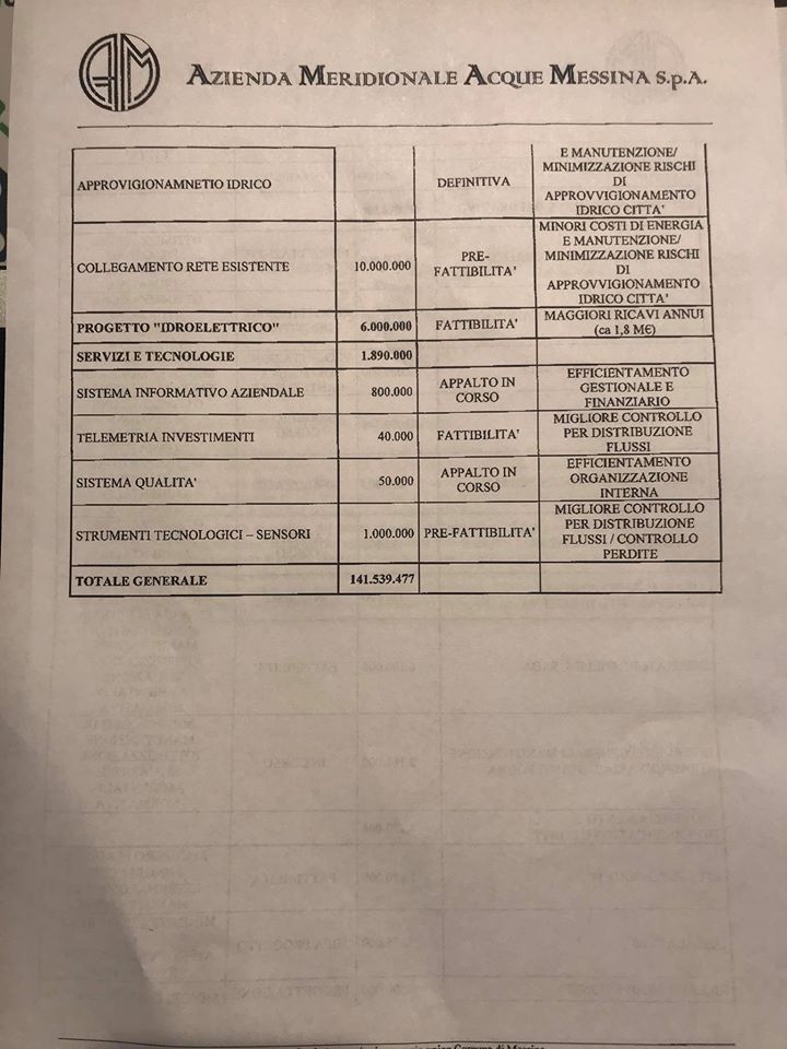 Nel piano operativo triennale opere per 141 milioni, di cui 58 già finanziate. Amam e Comune di Messina chiedono al Ministero la parte restante