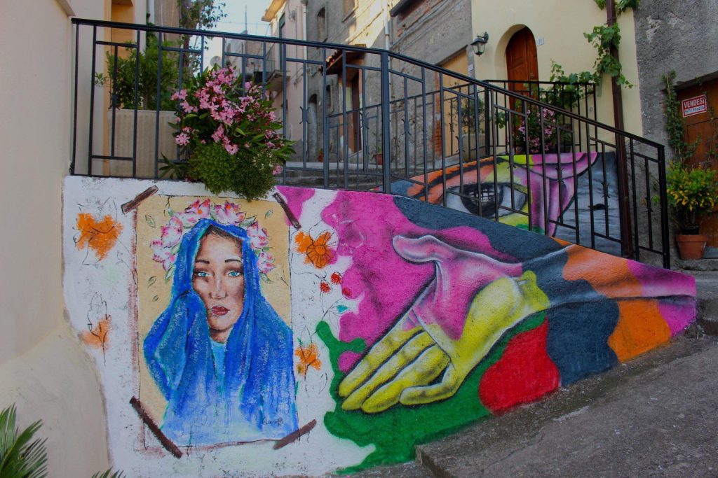 “Abbiamo voluto unire tre diversi stili –spiega Matteo Dragà- siamo stati quindi in grado di fondere insieme arte informale, street art e arte figurativa. Il nostro obiettivo principale è di avviare un vero e proprio percorso di iniziative legate all’arte e alla cultura. Tra i volti che abbiamo realizzato c’è anche il volto di un giovane migrante, ma il messaggio che desideriamo far passare non è politico bensì di accettazione e inclusione. Il termine migranti però si sposa anche con i tanti filippesi che hanno abbandonato il proprio paese per i più svariati motivi, come il lavoro ad esempio. Ci siamo rivolti anche a loro perché spesso, nonostante la lontananza, l’amore per il proprio paese d’origine resta sempre vivo nel cuore. Il progetto –ha aggiunto- ha ricevuto il supporto dell’amministrazione, che ha accolto con piacere la nostra proposta. Certamente non può essere un murale a rilanciare il territorio, tuttavia abbiamo potuto osservare una certa attenzione nei confronti del comune da parte di tante persone, come architetti o semplici visitatori. E’ un inizio”.