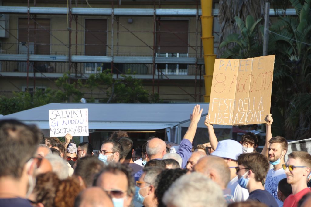 «In un momento storico in cui l’Italia avrebbe davvero bisogno di nuove strategie, di ripensare il sistema economico, di garantire a tutte e tutti una speranza –si legge ancora nella nota- Salvini non sa fare altro che tirare fuori i suoi beceri cavalli di battaglia: “turisti che non pagano” ha apostrofato alcuni dei ragazzi ospiti dello Sprar, invitando chi in piazza lo contestava a “portarsene tre a casa”. Una strategia comunicativa che ha un obiettivo ben chiaro: sostituire nel mirino dell’odio i meridionali di una volta con i migranti di oggi per unire il paese contro un nemico comune. Perché è solo così che si sentono “vincenti”, seminando odio contro chi non è come loro per camuffare inadeguatezza e ruberie. È proprio per questo che anche noi, ieri sera, eravamo in piazza. Mettendoci la faccia, senza violenze né agite né suggerite con codardia».
