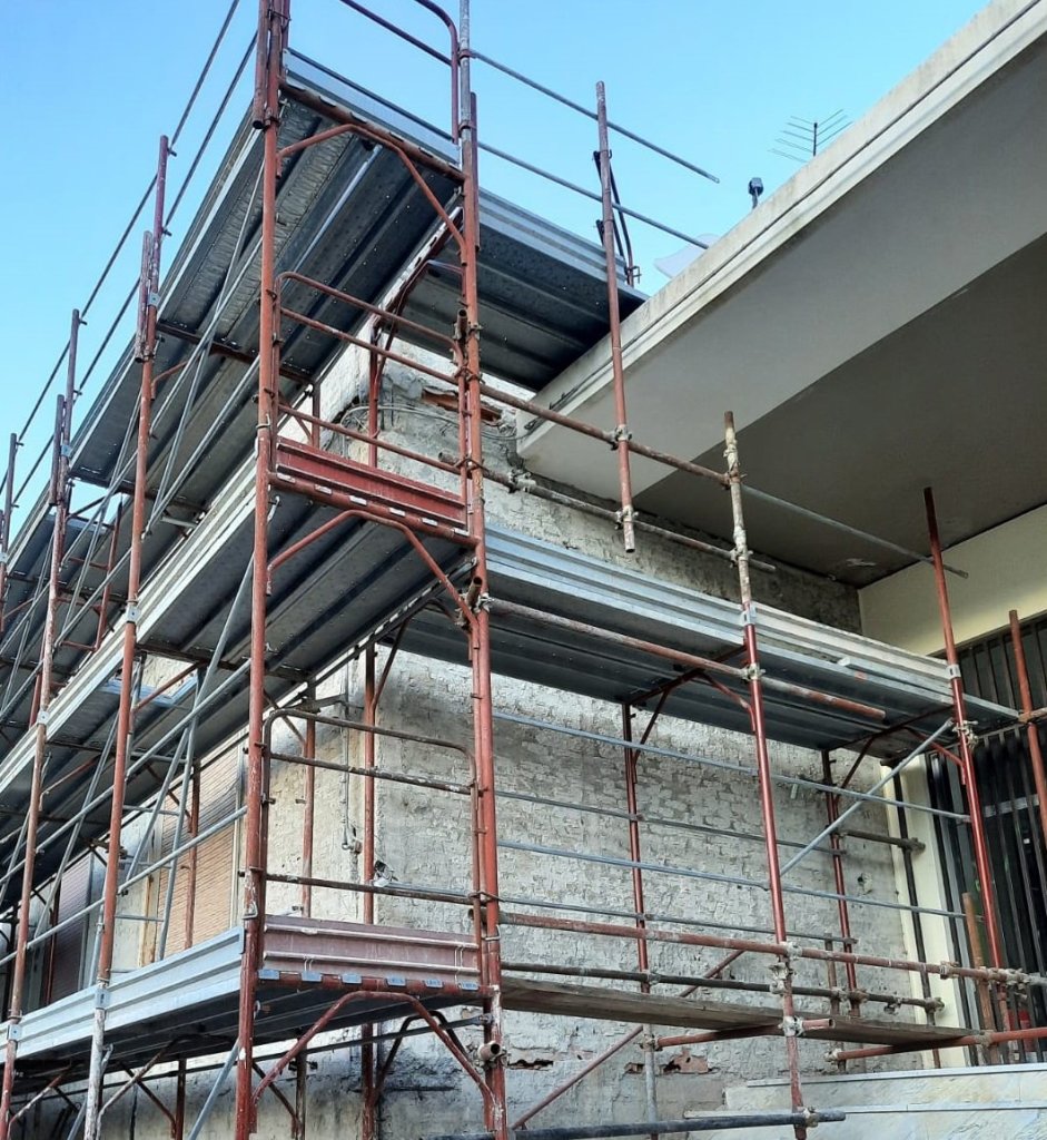 SAVOCA – Nel plesso scolastico della frazione Rina, che ospita primaria e secondaria di primo grado, proseguono i lavori di ristrutturazione, adeguamento sismico, sicurezza delle strutture e degli impianti, eliminazione delle barriere architettoniche e miglioramento energetico. Si tratta di interventi finanziati dalla Regione con 862mila 322 euro, mentre altri 95mila 813 euro sono stati cofinanziamento dal Comune. Questa mattina, il sindaco Massimo Stracuzzi ha effettuato un sopralluogo nel cantiere per verificare lo stato di avanzamento dei lavori. “Gli interventi per il miglioramento sismico della struttura – ha spiegato Stracuzzi – sono quasi ultimati. Poi si punterà ad efficientare tutto l’involucro esterno con la messa in opera del cappotto termico e degli infissi a taglio termico”.