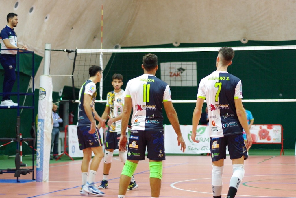 Sestetto iniziale per i locali di coach Zappalà che vede in campo per la prima volta in stagione Giliberto al palleggio con Rizzo opposto, schiacciatori Simone Sulfaro e Mazza, centrali Cucca e Ciaramita con liberto Alberto Alaimo. A partita in corso ci sarà spazio anche per Giorgio Sulfaro, Marco Alaimo e Bartolomeo. Risponde coach Cerzosimo con Esposito-Miranda sulla diagonale palleggiatore-opposto, schiacciatori Granata e Fonicello, centrali Gaetano e Grasso con Balestrieri libero.