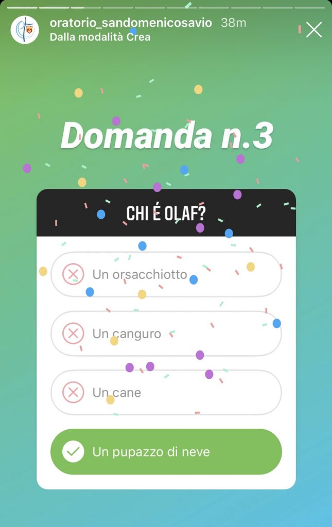 Ispirati dal loro parroco, i giovani dell’Oratorio non hanno voluto essere da meno, non abbandonando neanche un secondo i loro bambini, con cui non possono condividere l’abituale appuntamento del sabato pomeriggio. Ma a sostituirlo sono tantissimi giochi e attività con cui i ragazzi sono presenti, quotidianamente, sul loro profilo Instagram, per i bambini, ma anche per le mamme e i papà e per chiunque voglia un po’ di compagnia.