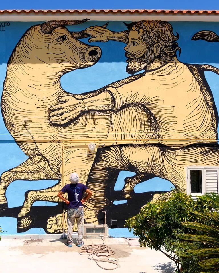 Ce ne aveva parlato Andrea Sposari – già promotore de A’Maschira in quel di Cattafi – artista giovanissimo ed eclettico che ha realizzato un murales alto 5 metri. Le foto raccontano di una fatica sotto al sole che ha entusiasmato persino l’amministrazione comunale in un linguaggio diretto, colorato, veloce e moderno.