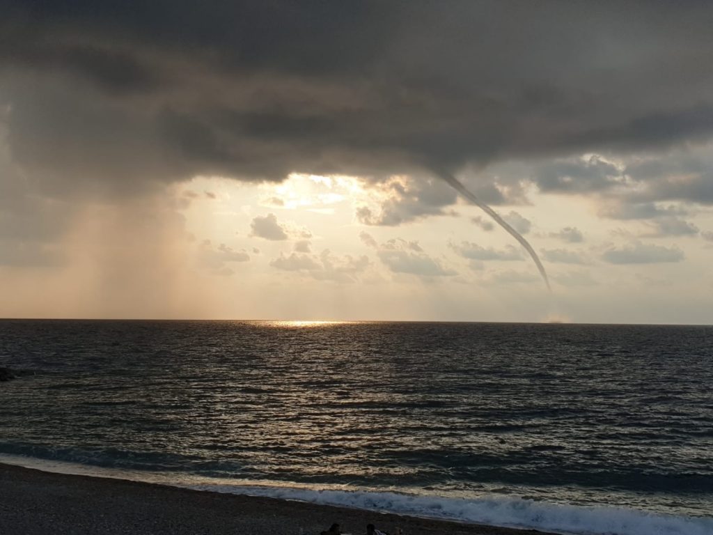 Non solo piogge e temporali. Nel pomeriggio di ieri, lungo le coste del messinese tirrenico, si sono sviluppate diverse trombe marine, del tipo “waterspout”. Ossia fenomeni vorticosi di origine non “mesociclonica” (non originati da un temporale a supercella). Una di queste è passata davanti la spiaggia di San Saba, luogo conosciuto in tutta Italia per essere fabbrica di frequenti fenomeni vorticosi nel periodo estivo ed autunnale.
