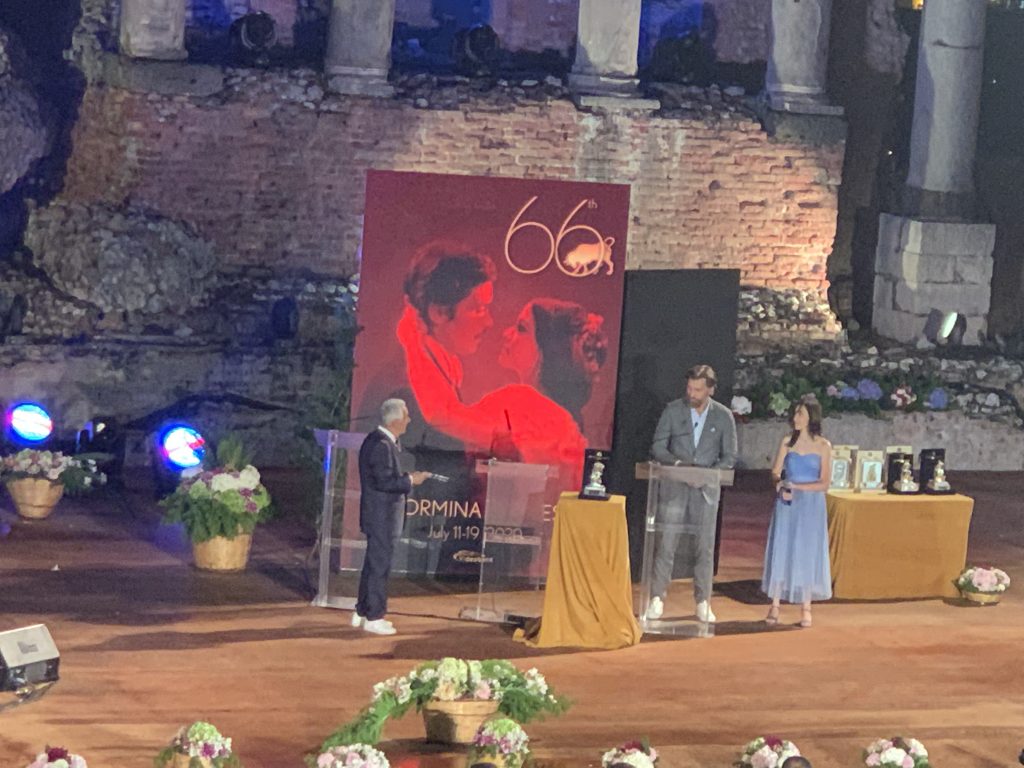 Fino al momento più atteso, la cerimonia di chiusura del TaorminaFilmFest al Teatro Antico e le sue premiazioni. La platea lascia il posto all’orchestra per un palco che diventa immenso, nella meravigliosa atmosfera del Teatro Greco, resa ancora più suggestiva dalle luci, dai giochi di colori, e dalle lune proiettate sullo sfondo.