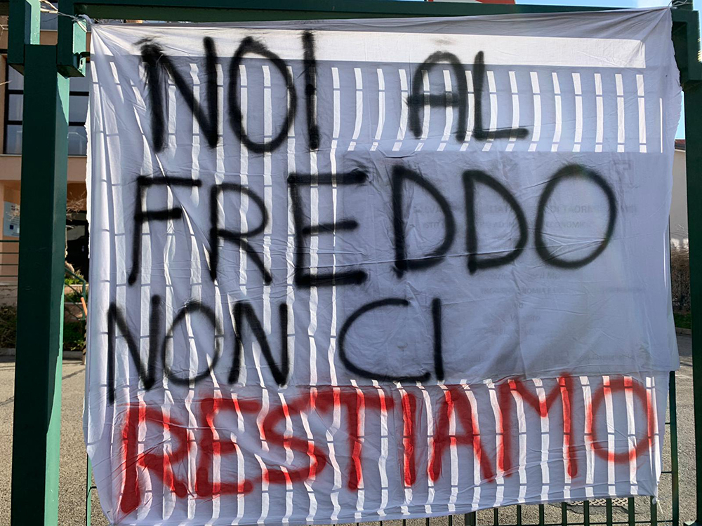 TAORMINA – “Termosifoni spenti, istituzioni assenti, ma a pagare sono sempre gli studenti”. Lo slogan campeggia su un lenzuolo all’ingresso del “Pugliatti” di Trappitello. Al rientro delle vacanze gli studenti dell’Istituto d’istruzione superiore di Taormina e della sede distaccata di Furci Siculo hanno trovato le aule fredde e si sono rifiutati di fare lezione. “Noi al freddo non ci restiamo”, si legge ancora in un altro lenzuolo di protesta.