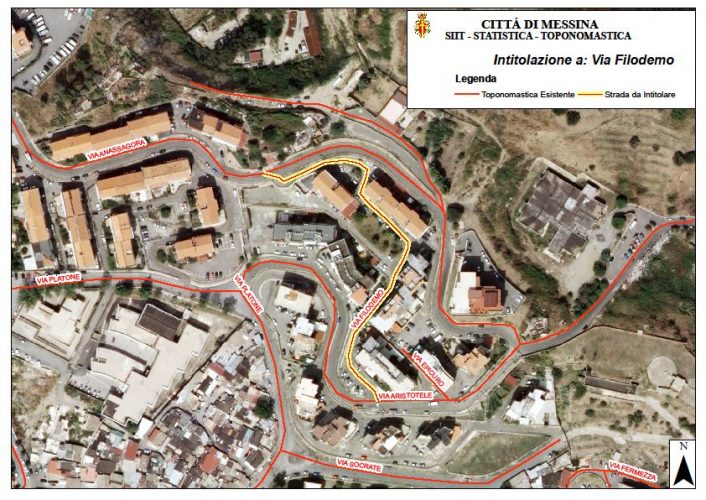 Per quanto riguarda le vie senza denominazione, a Fondo Fucile quella tra le vie Anassagora e Aristotele prende il nome di via Filodemo, in onore del filosofo.