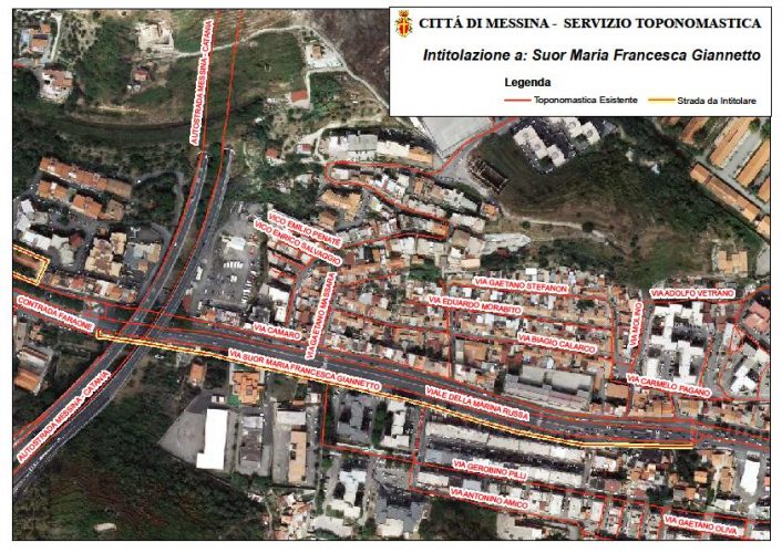 Cambia nome la Vecchia via Comunale di Camaro, intitolata adesso via Suor Maria Francesca Giannetto, in memoria di una religiosa italiana.