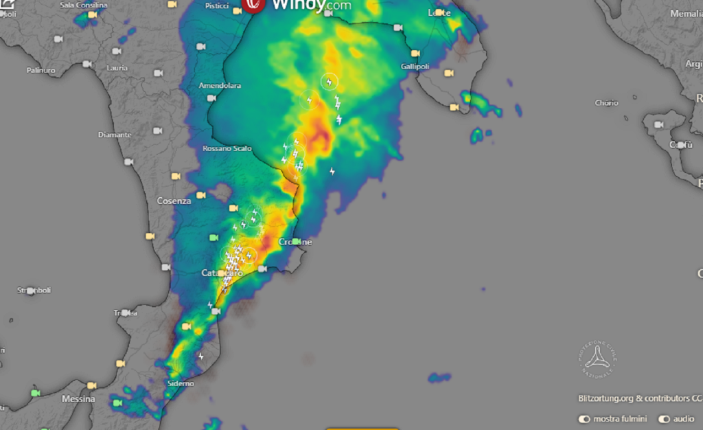 Dopo aver duramente colpito il messinese, con l’alluvione lampo fra Barcellona Pozzo di Gotto e Milazzo, nella notte fra sabato 3 e domenica 4 dicembre il maltempo si è accanito sulla Calabria ionica, dove si è sviluppato un imponente temporale, di tipo “v-shaped storm”, che ha prodotto veri e propri nubifragi e persino un evento tornadico.