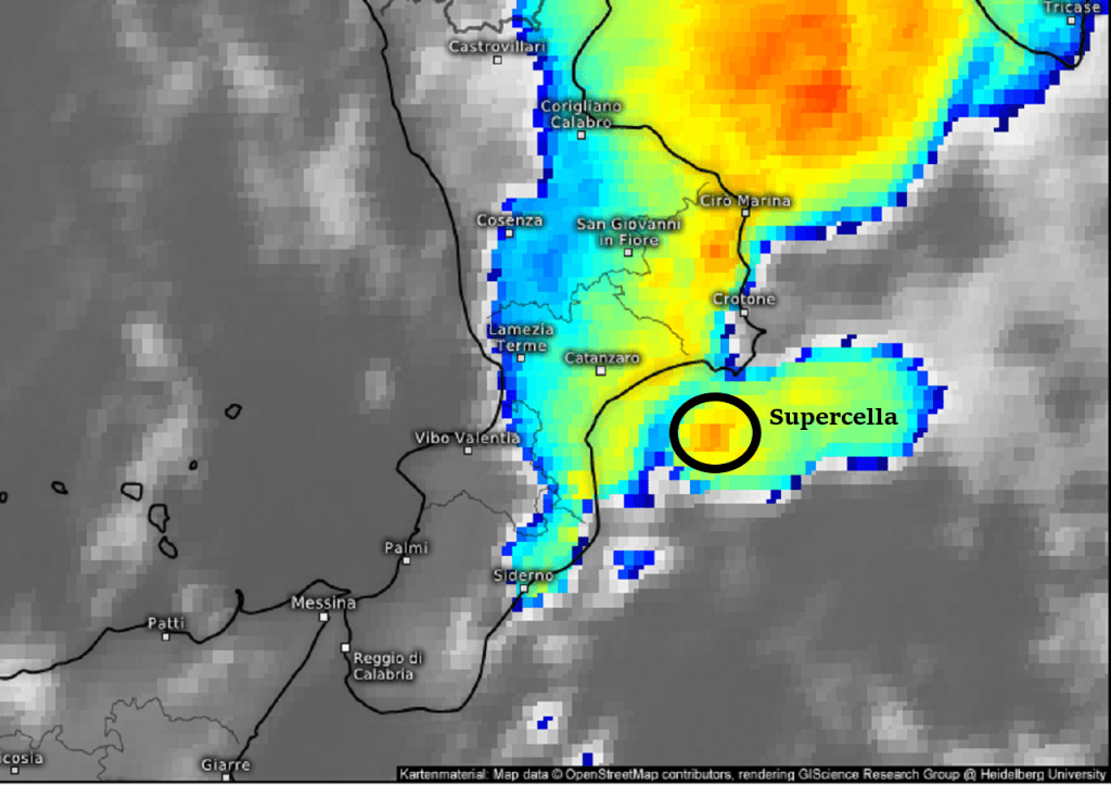 L'evento tornadico che ha colpito il crotonese sarebbe stato originato da una supercella in risalita dal tiepido mar Ionio
