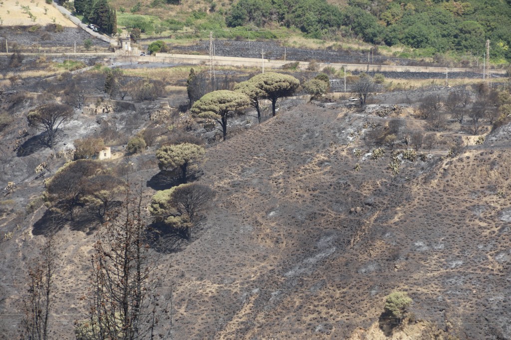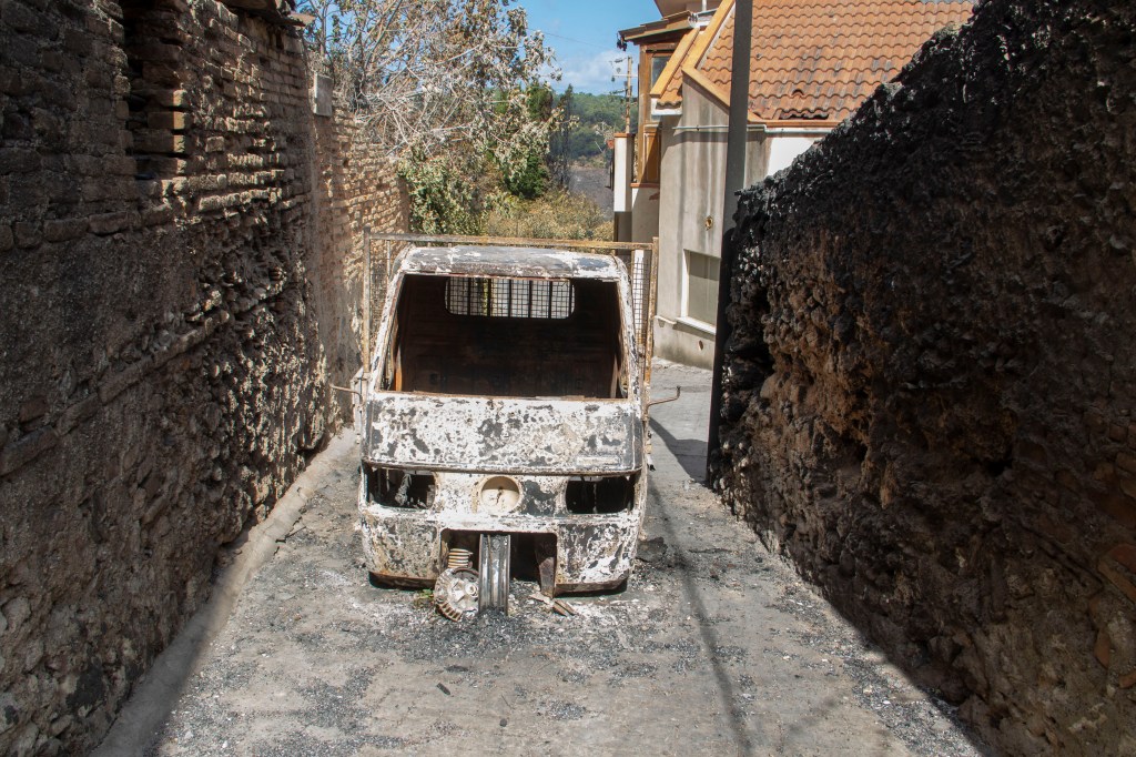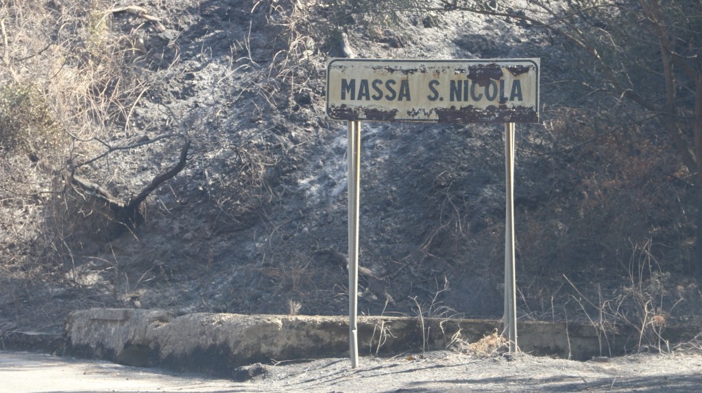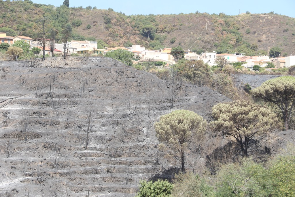 MESSINA. La strada provinciale verso i villaggi delle Masse scorre fra due distese di cenere e desolazione. Rivoli di fumo si alzano ancora dagli scheletri carbonizzati degli alberi, chilometri di terra bruciata e silenzio. Nella notte del 25 luglio, le fiamme partite da Campo Italia, hanno raggiunto spinte dal vento le zone abitate di Masse e Curcuraci. Una notte di paura e inferno, in cui il fuoco ha distrutto tutto quello che trovava sul suo cammino. “Intorno alle 4 di notte abbiamo visto che le fiamme erano vicino al villaggio” racconta Marcello, abitante di Massa San Giovanni “abbiamo cercato di contenere i danni, ma purtroppo il fuoco ha raggiunto alcune case bruciando i tetti”. Un mezzo a motore è andato distrutto, completamente in cenere l’oasi “Monsignor Fasola”, danni anche al cimitero di Massa Santa Lucia, dove i cipressi sono andati in fumo.