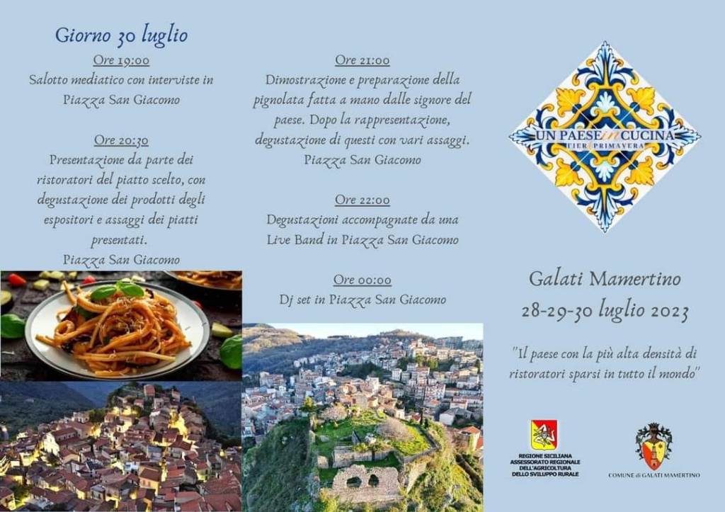GALATI MAMERTINO – Si apre stasera “Un paese in cucina”, la tre giorni di eventi costruiti intorno al cibo e le eccellenze del territorio, organizzata dal Comune grazie al finanziamento dell’assessorato regionale all’Agricoltura. Per tre sere, dalle 18 circa, in piazza San Giacomo e dintorni si susseguiranno dibattiti, show cooking, degustazioni, visite guidate e performance, con al centro il tema della pasta, uno dei prodotti centrali della cucina galatese ormai famosa ovunque grazie ai tanti ristoranti del centro montano e gli ancora più numerosi ristoratori che si sono affermati ovunque nel mondo.