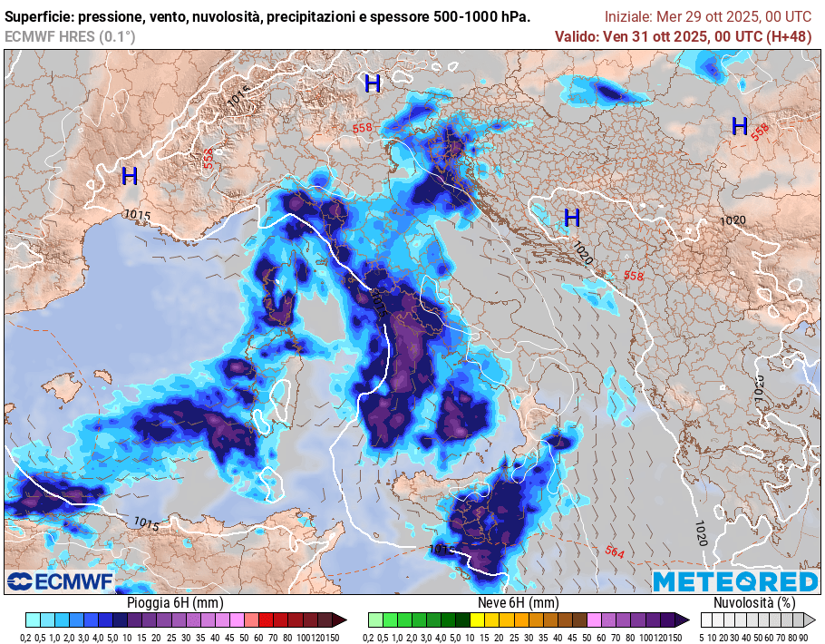 Mentre l’uragano Melissa, dopo aver investito la Giamaica e Cuba, si prepara a risalire sul nord Atlantico, andando ad ondulare la corrente a getto, con implicazioni sul tempo in Europa per inizio novembre, a partire dal pomeriggio di domani l’avamposto di una perturbazione nord-africana raggiungerà la Sicilia, determinando un brusco peggioramento del tempo. Questo fronte instabile risalendo verso lo Ionio andrà ulteriormente a intensificarsi, apportando piogge e qualche rovescio pure sul Messinese, nella prima parte di venerdì 31 ottobre, giorno di Halloween. Sul capoluogo, così come sulla fascia ionica della provincia, si aspettano accumuli fra i 20 e i 40 mm di pioggia nelle 24 ore, mentre sul lato tirrenico le piogge saranno più deboli, con alcune aree che rischiano anche di essere quasi del tutto saltate. E’ questa non sarà una buona notizia, visto che finora di pioggia ne è caduta davvero poca, soprattutto sul lato tirrenico.