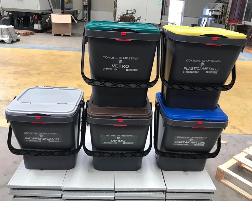 Oggi sono stati consegnati i primi cestelli che fanno parte dei kit che saranno destinate alle utenze domestiche singole e ai condomini con meno di 8 appartamenti. Si tratta di kit che comprendono 5 cestelli di colore grigio con i coperchi di colore diverso in base al rifiuto a cui sono destinati: verde per il vetro, giallo per la plastica e i metalli, grigio chiaro per l’indifferenziato, marrone per l’umido e blu per carta e cartone.
