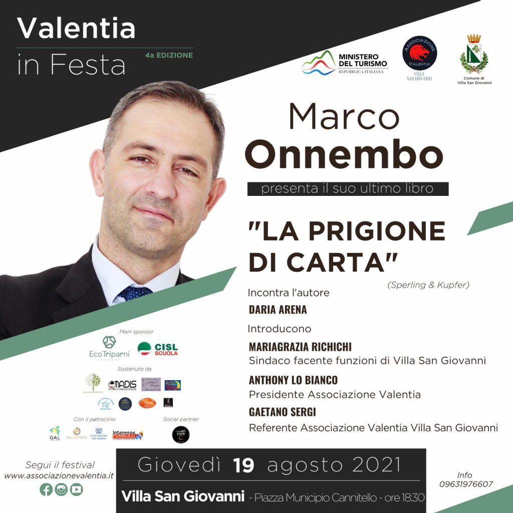 Alle 18:30 la presentazione del libro “La prigione di carta” di Marco Onnembo, edito da Sperling & Kupfer. Protagonista di questo romanzo è un professore appassionato e idealista in lotta per salvare la scrittura e i libri dall’oblio. Un romanzo distopico di grande attualità nell’era del digitale.