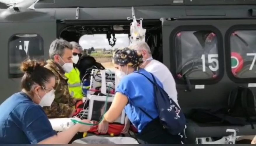 TAORMINA – Un bimbo nato in gravi condizioni di salute è stato trasportato ieri notte da Agrigento a Taormina. Il neonato è venuto alla luce a Sciacca con una grave insufficienza respiratoria. Viste le condizioni critiche, è stato allertato il Centro cardiologico pediatrico del Bambino Gesù di Taormina, centro di riferimento per l’ecmo respiratorio nella popolazione natale e pediatrica per la Sicilia e la Calabria. L’equipe partita in ambulanza in piena notte dall’ospedale San Vincenzo ha raggiunto l’ospedale San Giovanni di Dio di Agrigento alla quattro del mattino, dove, verificate le gravissime condizioni del neonato, venuto alla luce da poche ore, è stato impiantato l’ecmo, una macchina che funge da cuore e polmone articiale. Viste le precarie condizioni del piccolo paziente, è stata contattata la prefettura di Agrigento, che ha verificato la disponibilità di un equipaggio dell’82° Centro C.S.A.R. (Combat Search And Rescue) di Trapani-Birgi, che è intervenuto per trasportare il neonato dall’Ospedale di Agrigento all’Ospedale di Taormina dove resterà fino a quando i polmoni non avranno recuperato la loro funzionalità.