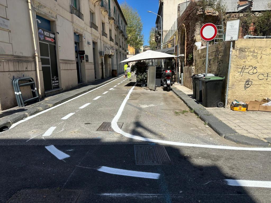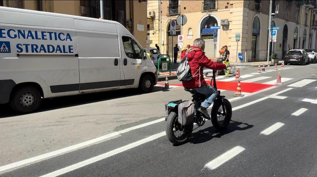 Completata in due giorni la segnaletica delle due corsie per le bici in via Del Vespro, Giordano Bruno e Solferino
