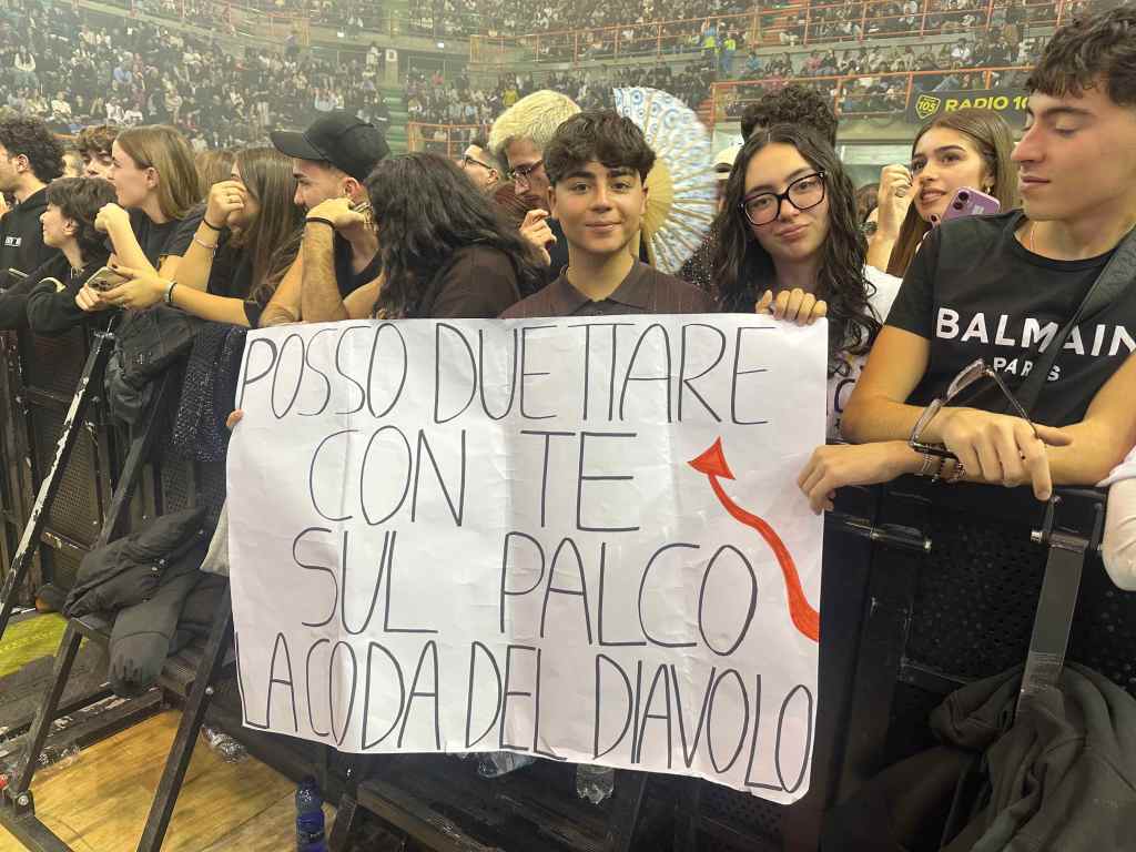 Il ragazzo è arrivato a Messina da Sciacca, insieme ad un gruppo di amici tra i 17 e i 18 anni. Si sono presentati alle 9 del mattino ai cancelli del PalaRescifina per conquistare la prima fila. E almeno per uno di loro ne è valsa la pena. Accanto a loro un altro gruppetto di giovanissimi fan arrivati da Palermo. E delle amiche con t-shirt personalizzate con su scritto “magnetica”, “erotica”, “galattica”, “audace”.