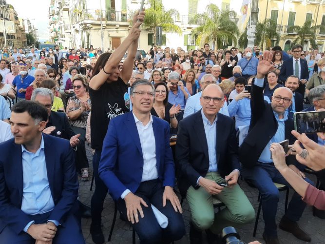 MESSINA – “Sono molto contento di essere qui a Messina, accanto a Franco De Domenico. Franco sarà un grande sindaco di Messina. Queste elezioni giocano un ruolo fondamentale a livello regione. Per noi questo impegno, con una coalizione larga e unita, è una battaglia prioritaria. Ci sono e ci siamo. Questo è un primo momento di avvicinamento alle Regionali del prossimo autunno”. Lo ha dichiarato il segretario nazionale del Pd, Enrico Letta, intervenuto questo pomeriggio in piazza Casa Pia a Messina per sostenere la campagna elettorale di Franco De Domenico, candidato sindaco del centrosinistra.