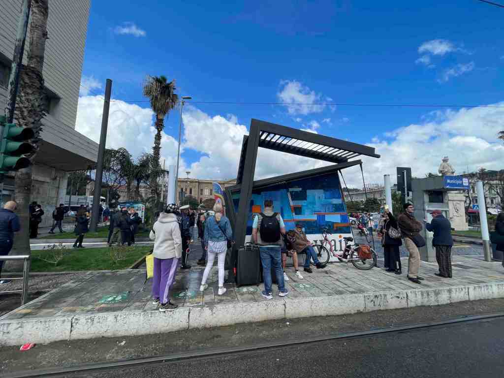 MESSINA – Nello scorso weekend l’artista messinese Antonio Giocondo ha riparato la sua opera vandalizzata nei mesi passati (leggi qui). L’ha fatto di sua iniziativa, senza che l’amministrazione glielo chiedesse. Ha voluto farlo in tempo per l’arrivo della prima grande nave da crociera carica di turisti. Si perché la fermata del tram “Municipio”, quella che ospitava appunto la sua pensilina artistica, è una delle prima immagini che i passeggeri sbarcati dalla nave si trovano davanti. Ancora prima del nuovo Infopoint di Largo Minutoli e della scritta “I love Messina” che tutti amano fotografare. L’artista e cittadino messinese non voleva che la firma dei vandali fosse il primo brutto ricordo per i turisti che transitano in città.