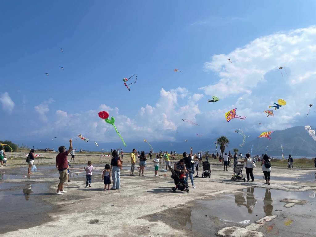 Quest’anno sono una ventina gli aquilonisti esperti, arrivati a Torre Faro da tutte le parti d’Italia. Le aree di volo sono raddoppiate e anche l’Arena di Capo Peloro è stata utilizzata per realizzare stand espositivi, come quello di Puli-amo Messina, ed essere fruita da famiglie con i passeggini e persone con disabilità che l’anno scorso avevano avuto difficoltà a raggiungere la spiaggia.