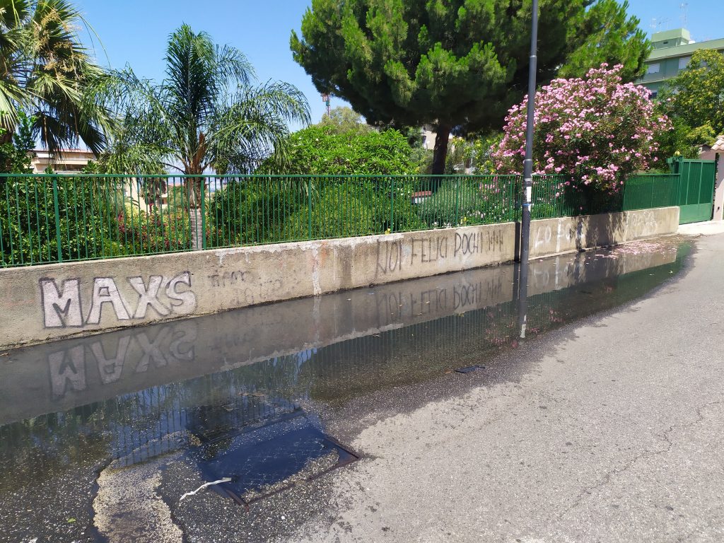 Reggio Calabria, una cospicua fogna a cielo aperto sgorga in centro città nei pressi di una scuola. I cittadini esasperati.
