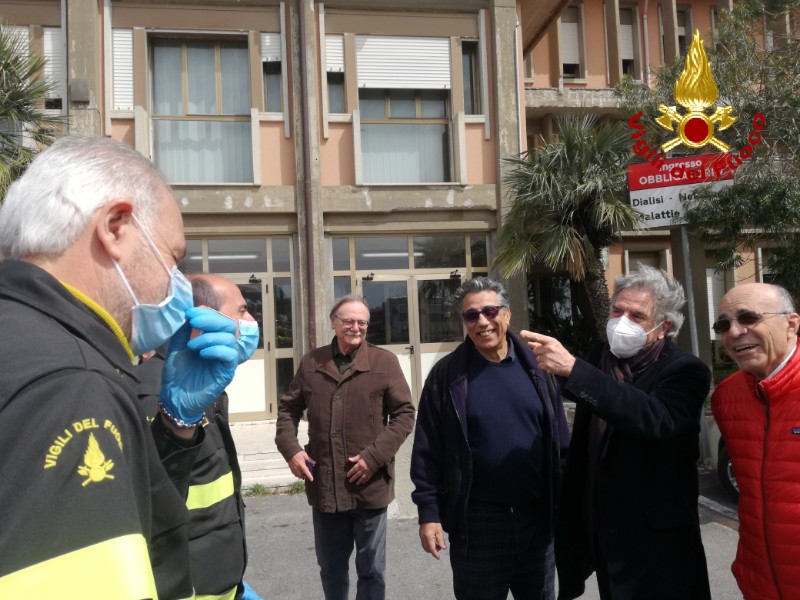Molti i mezzi della centrale arrivati a contorno dell’ospedale, dalla APS (Autopompa Serbatoio) fino alla AS (Auto Scala) alla quale è stata messa sulla grata del cestello la bandiera tricolore.