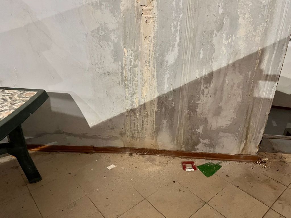 L’illuminazione al suo esterno è totalmente assente, l’unica luce proviene da alcuni lampioni in lontananza. Problemi anche in caso di pioggia. Il tetto e il pavimento mostrano segni di umidità.