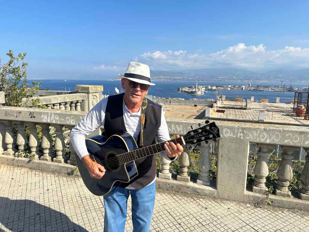 MESSINA – Ha più di 60 anni, non ha una famiglia e gli amici sono quelli che incontra cantando. Roberto Romano è diventato artista di strada per caso. Ogni mattina imbraccia la sua chitarra, indossa il suo cappellino, sale sul monopattino e si sposta in giro per la città. “Vivo da solo a Camaro, a volte prendo il bus per arrivare in centro e canto e suono pure per i passeggeri”, racconta.
