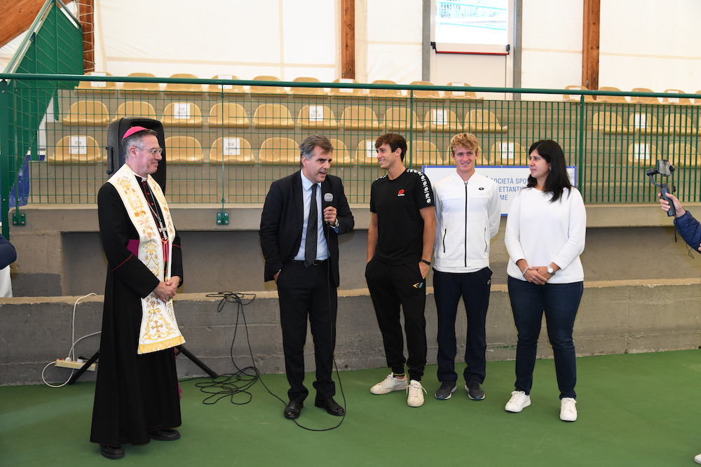 MESSINA – Inaugurati questa mattina i nuovi campi da tennis coperti alla cittadella sportiva universitaria. La struttura è stata rimessa a nuovo in sinergia con la Ssd UniMe, presieduta da Silvia Bosurgi. I terreni di gioco sono stati rivestiti in GreenSet, una resina che fornisce massimo comfort e una qualità di gioco al più alto livello, per una superficie complessiva di 2718 mq. Al taglio del nastro erano presenti il rettore Salvatore Cuzzocrea, i tennisti del Circolo Tennis & Vela Messina Fausto e Giorgio Tabacco, Simona Cascio, capitano della nazionale femminile di pallacanestro sordi. Il vescovo ausiliare monsignore Cesare Di Pietro ha benedetto il nuovo impianto sportivo.