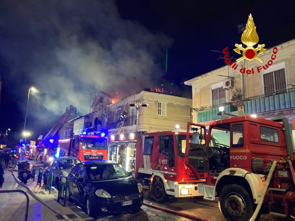 Sul posto cinque squadre dei vigili del fuoco, che hanno spento le fiamme intorno alle 21.40, oltre a carabinieri e vigili urbani.