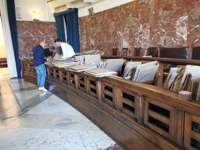 Ufficio elettorale centrale riunito in Aula consiliare a Palazzo Zanca. Documenti al vaglio per stabilire se i dati sono congrui o ci sono stati errori