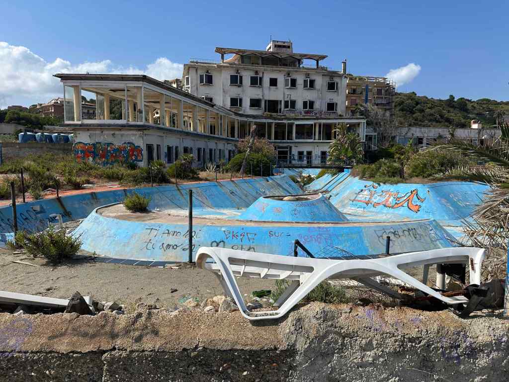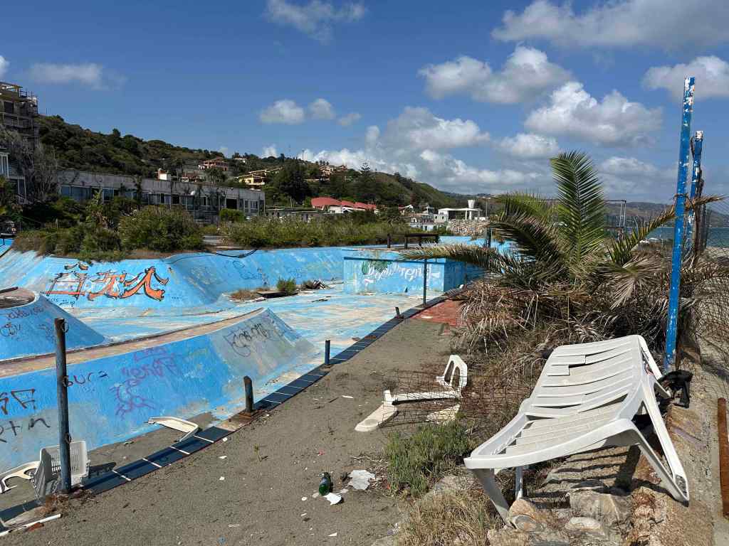 MESSINA – Si chiamava Giardino delle Palme e negli anni ’60 era il gioiello di Mortelle. Oggi le palme ci sono ancora, ma tutt’intorno c’è solo degrado e abbandono. La struttura è inaccessibile, se non tramite le recinzioni divelte. Dalla spiaggia, infatti, capita che qualcuno si introduca all’interno. E così in qualche occasione la vecchia piscina è diventata una pista da skate e la terrazza sopra le vecchie camere d’albergo una piattaforma da cui lanciare sassi.