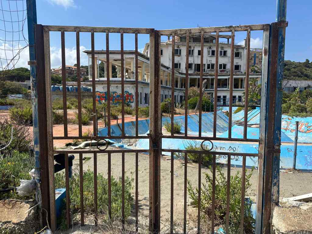 Quello che fino a qualche anno fa era il fiore all’occhiello della costa tirrenica, con il suo albergo, il bar, il ristorante, il lido e la grande piscina sul mare è diventato un non luogo. Nelle stesse condizioni il vicino lido Aragosta, con le sue cabine colorate sulla sabbia. Anch’esso circondato da anni dalle reti arancioni.