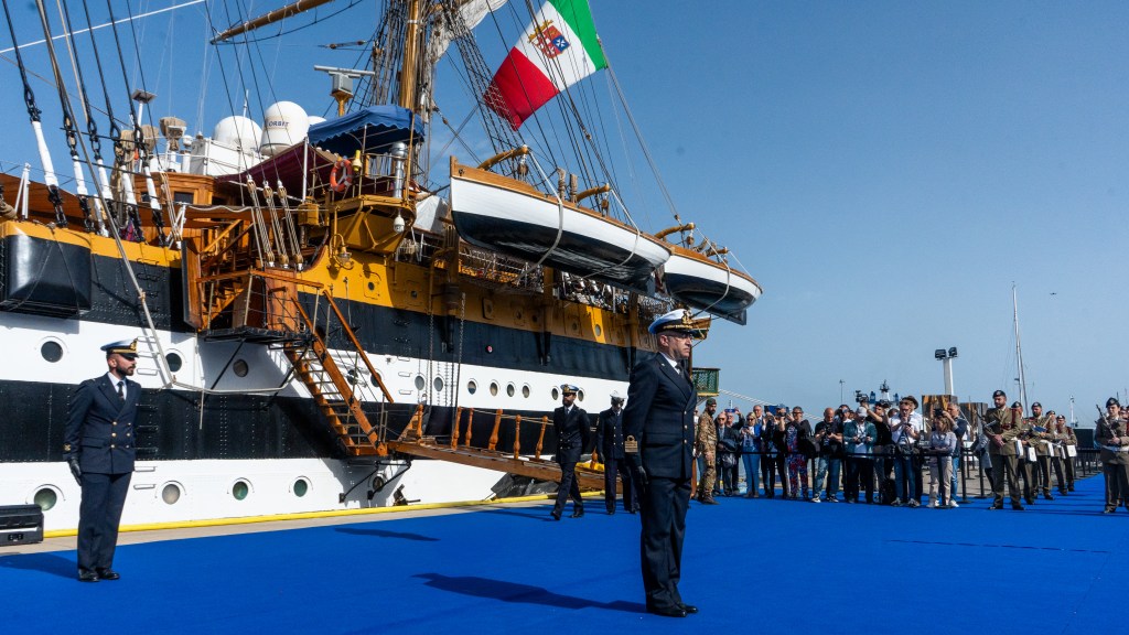 REGGIO CALABRIA – Lo storico veliero Amerigo Vespucci, giunto nel porto di Reggio Calabria, lunedì mattina, oltre alle numerose autorità civili e militari, è stato accolto dalla banda musicale della Brigata Meccanizzata “Aosta” . Nel corso della tappa reggina il Villaggio IN Italia, è stato visitato dal Ministro per la Pubblica Amministrazione Paolo Zangrillo e Luca Andreoli Amministratore Delegato di Difesa Servizi S.p.A., la società in house del Ministero della Difesa che realizza e supporta tutte le fasi dell’iniziativa.