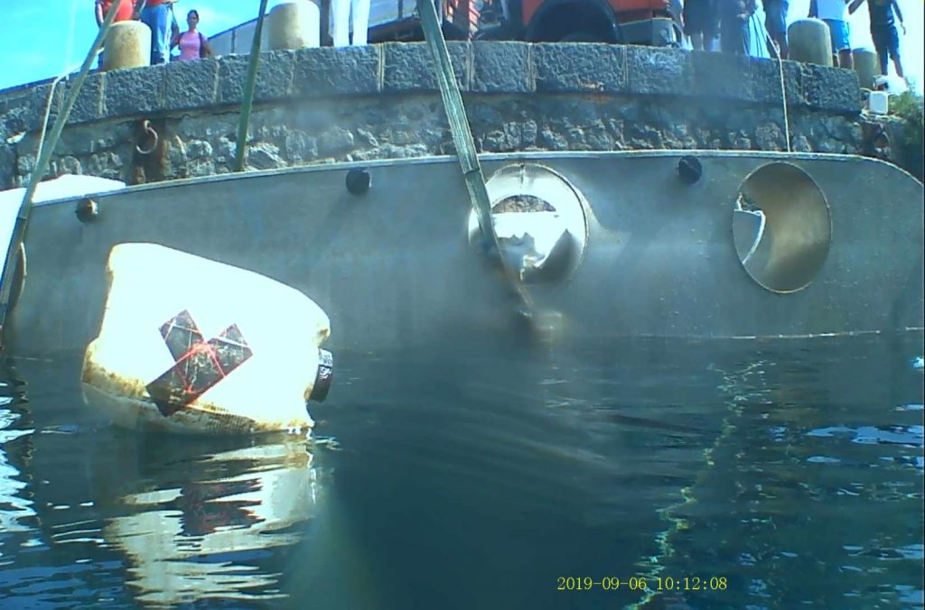 La zattera è stata recuperata il 6 settembre e si trovava fuori dal porto a pochi metri metri di profondità. È stato necessario l’intervento di un esperto operatore tecnico subacqueo (ots) di Reggio Calabria.