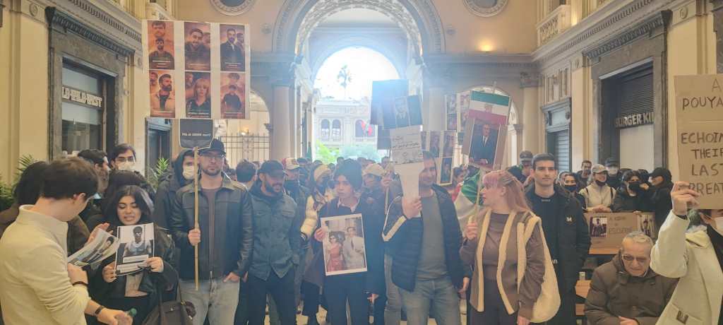 Il grido di libertà in galleria: “Democrazia per l’Iran”