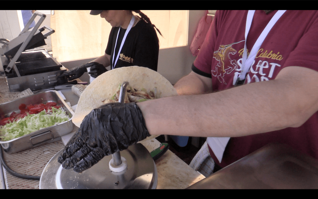 Panino al polpo con la nduja, wrap di pesce spada al bergamotto e asproburger: ecco alcune delle specialità tutte calabresi. Ma non mancano le braciole, l’arancino, la focaccia e altre prelibatezze messinesi. Il burritos, le ciambelle americane, gli arrosticini abruzzesi e tanti altri cibi da strada.