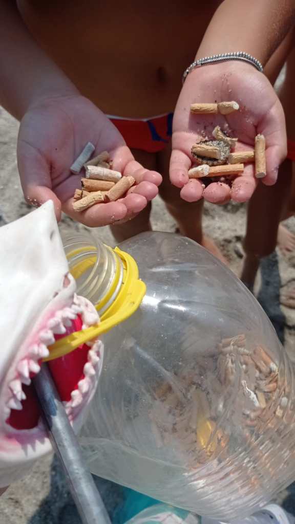 Qualcuno ha con sé i contenitori riutilizzabili, ma purtroppo moltissimi mozziconi invadono ancora la spiaggia della riserva naturale di Capo Peloro. La sirenetta Lilla nella sua camminata incontra anche un gruppo di signori che già dalle prime ore del mattino avevano raccolto una busta piena di rifiuti: “Lo facciamo tutte le mattine, puliamo tutto quello che lasciano in spiaggia i ragazzi la sera”.