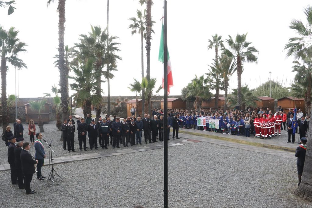 Toccante la deposizione della corona d’alloro, benedetta dal parroco della chiesa di Portosalvo, padre Agostino Giacalone, accompagnata dal suono del Silenzio.