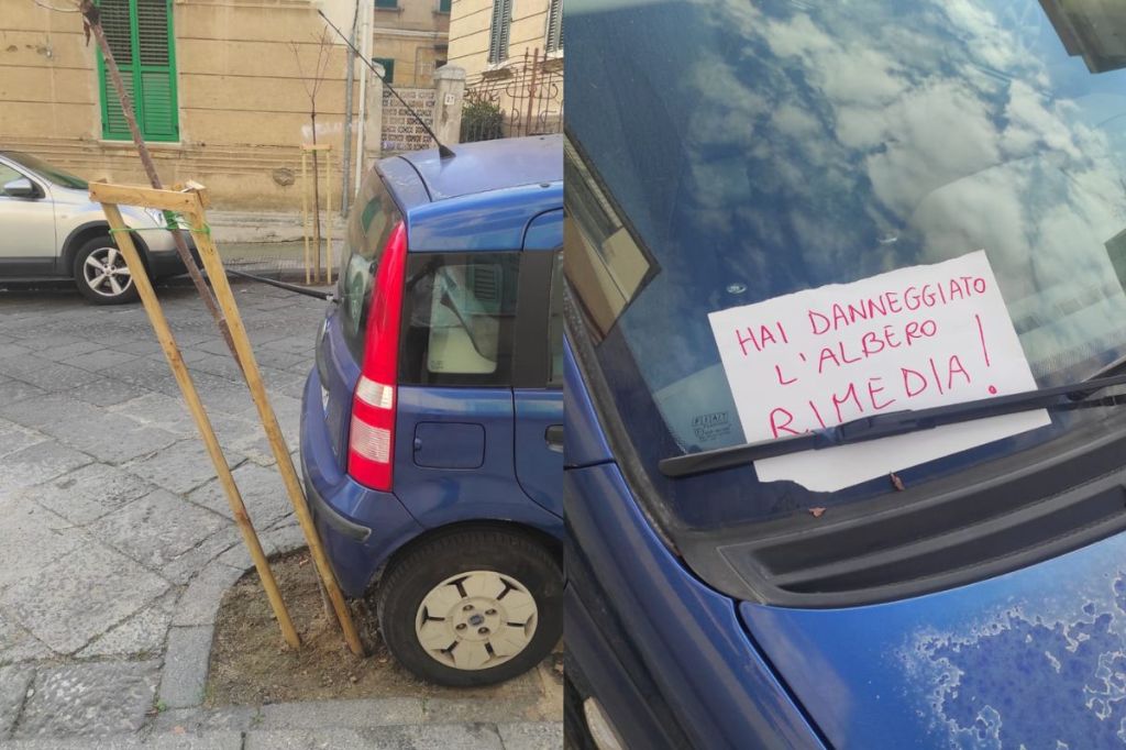 I nuovi alberelli abbattuti dal parcheggio selvaggio